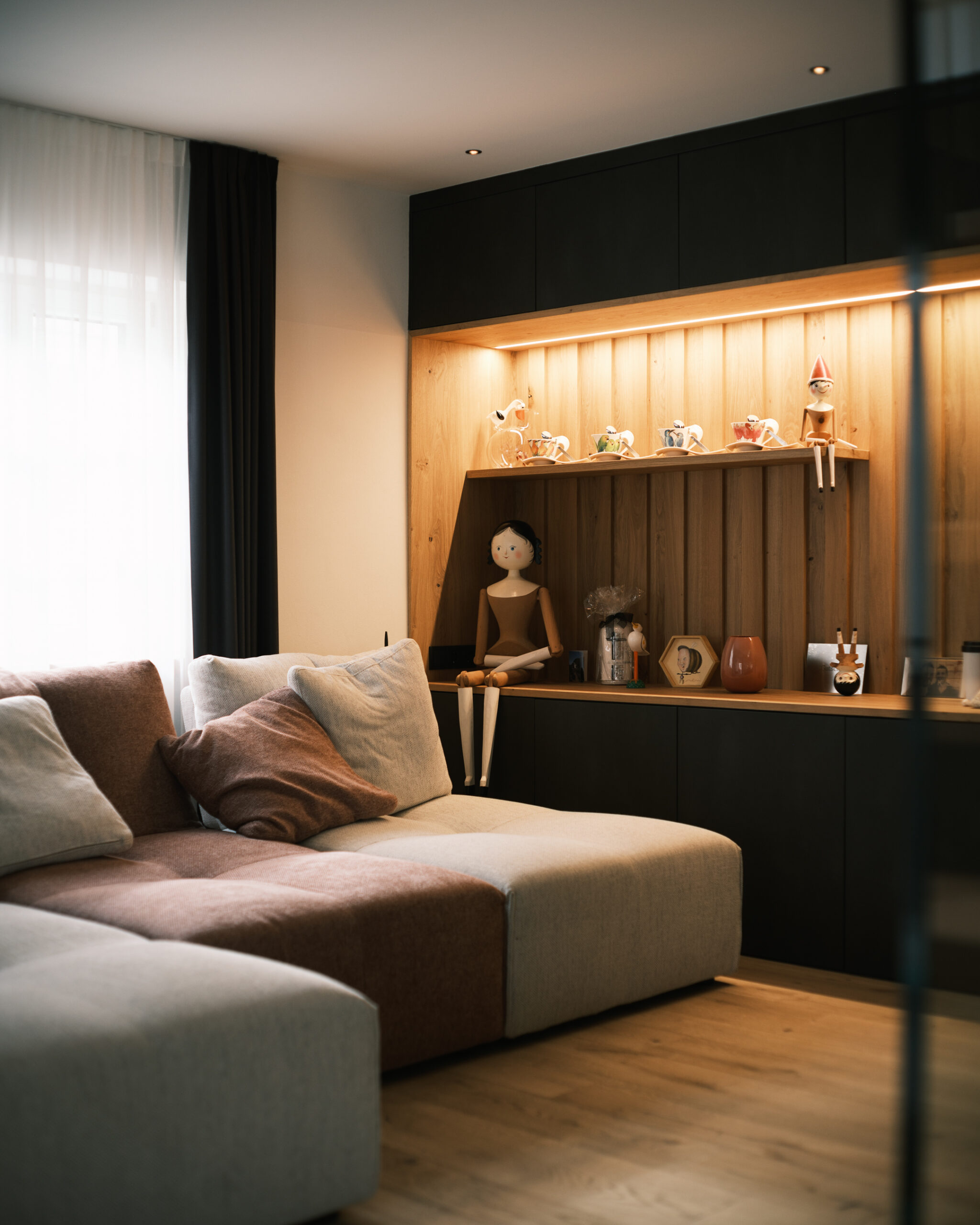 Installazione elettrica durante la ristrutturazione di un appartamento su due piani, compresa la domotica; fornitura e installazione dell’illuminazione